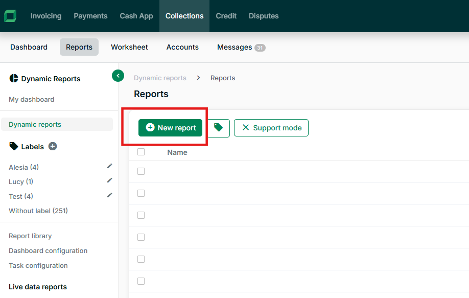 Navigate to Reports in collections and Create a new report.