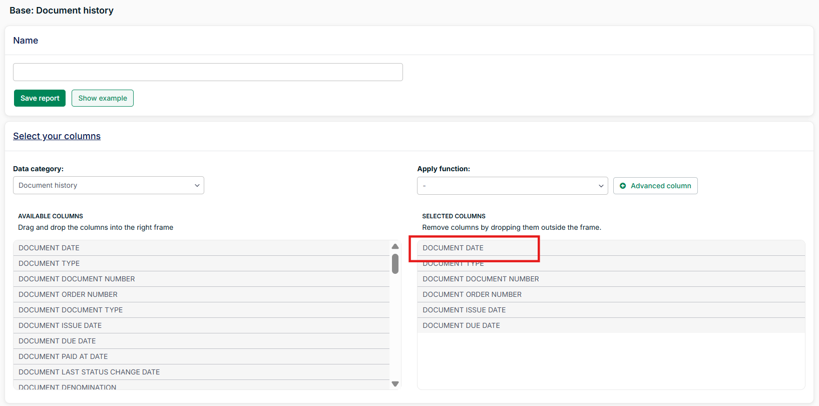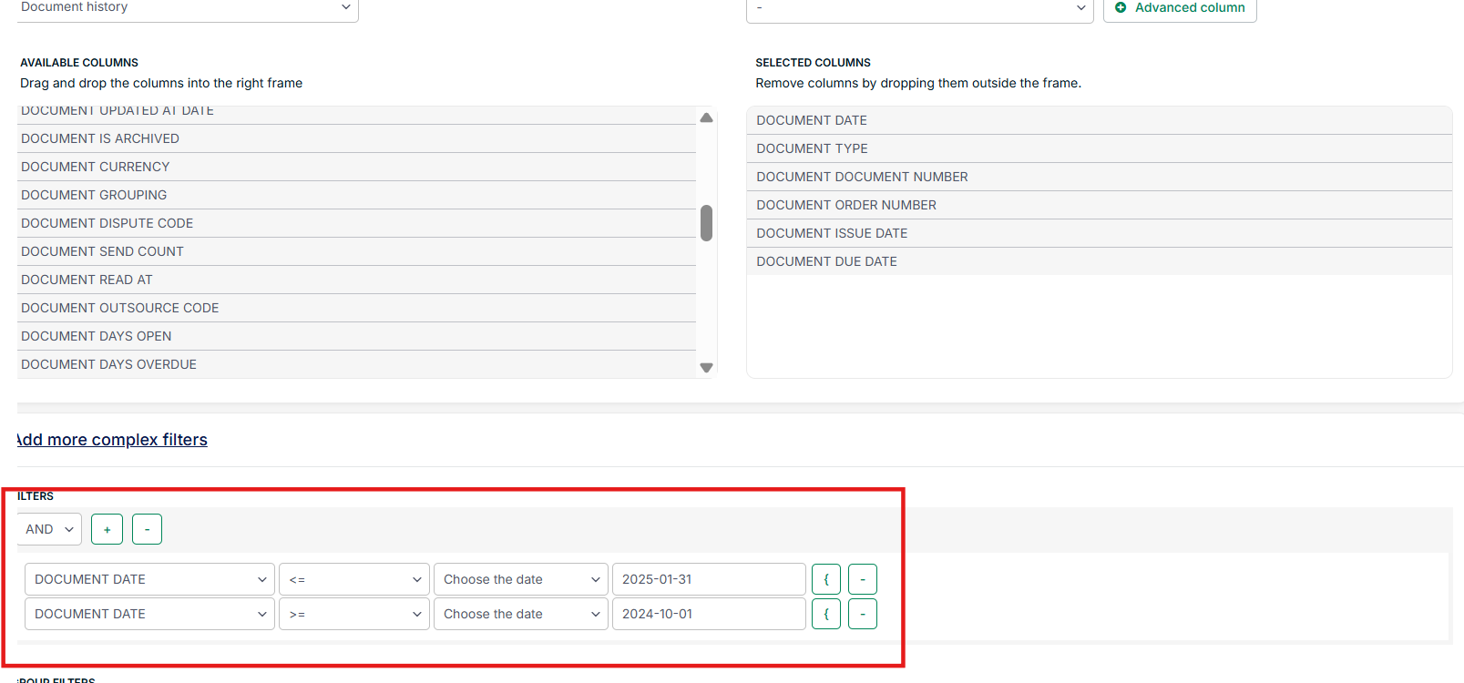 IMPORTANTAdd the column document date as it denotes the logging date with the status of that document at that time. You will want to use this document to filter. When exporting historical changes on accounts use the column account date, and for the workspace use the column workspace log date.