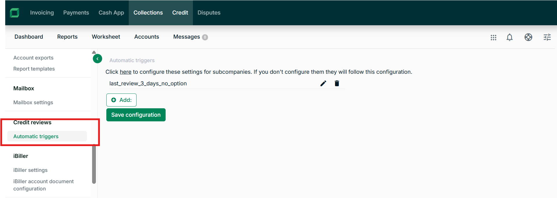 There are several steps to configuring Credit review. Select the drop-down for more information on each step.