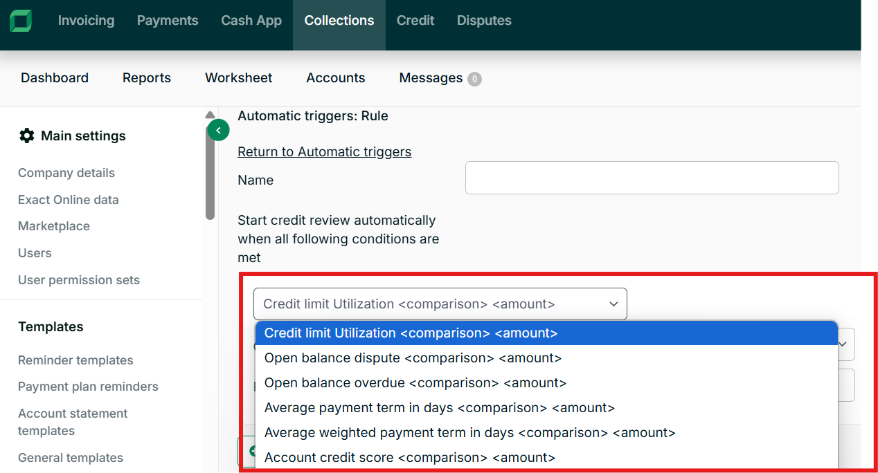 Define one (1) or multiple triggers. When the defined rules apply for an account, it will move to active review.