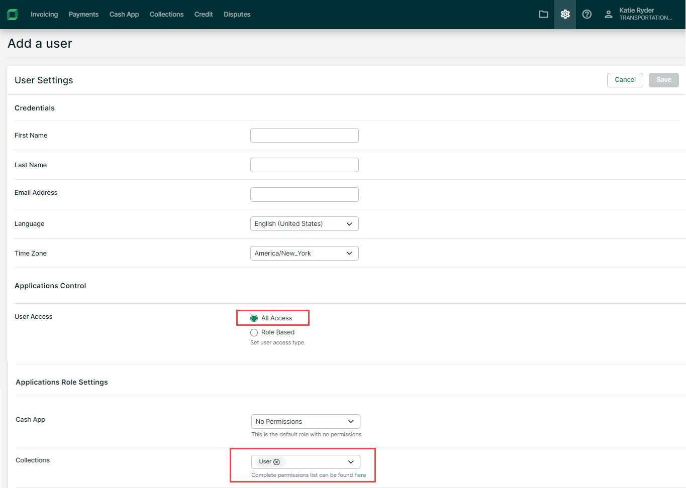 Users from the Billtrust platform will be synced to their corresponding collections platforms. Every user with All Access or Role-Based access to Collections in the Billtrust Platform will be added as a new user in Collections.