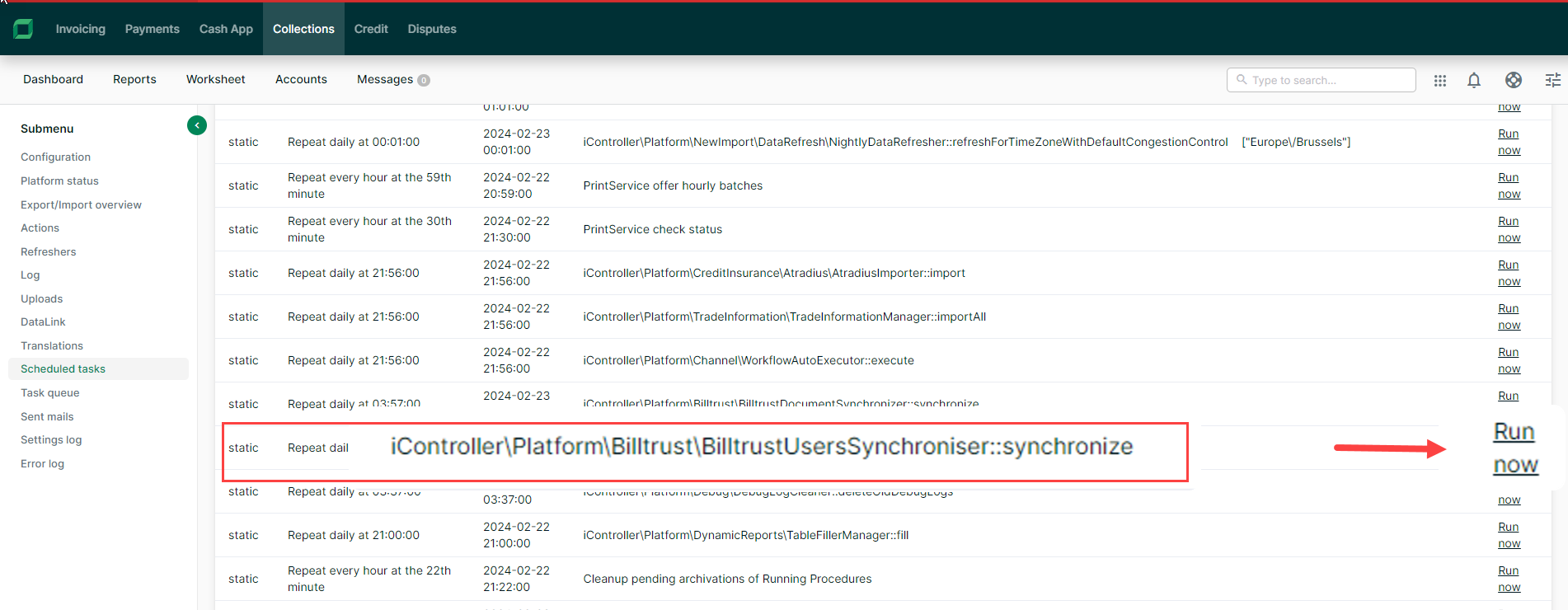 Select Scheduled Tasks from the left navigation menu.