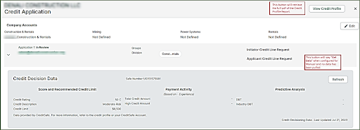 - If the customer is set for automatic credit pulls, the data will be available on the credit app when the user opens it for review.